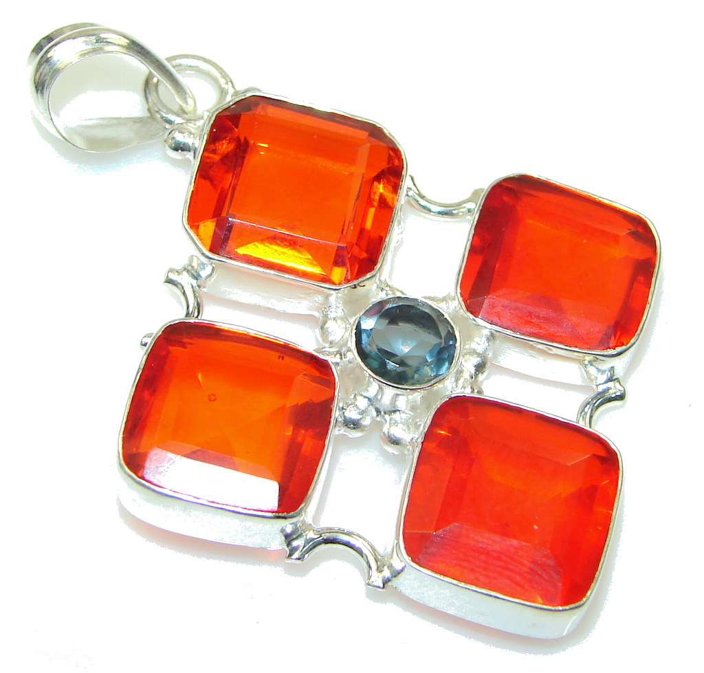 Fabulous Design!! Japanese Fire Opal Sterling Silver Necklaces