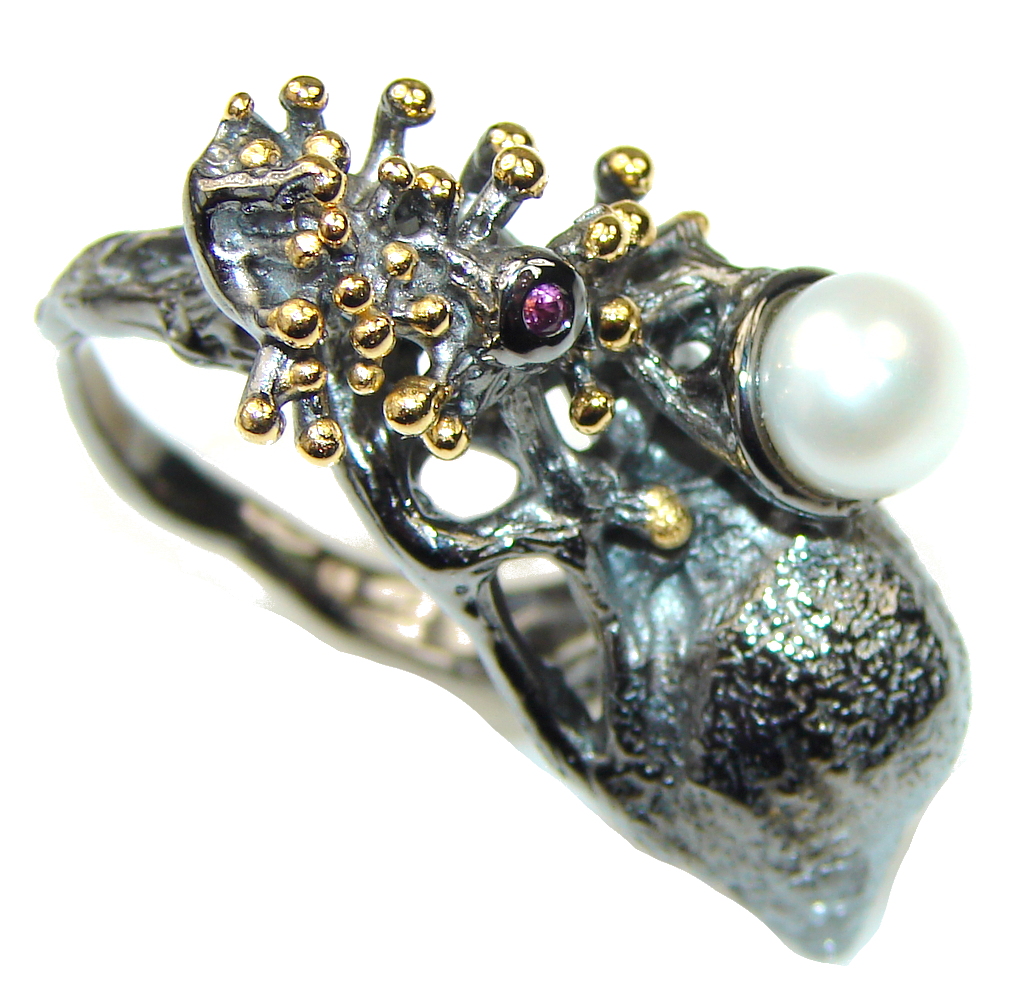 Gorgeous Italy Made, Rhodium Plated, 18ct Gold Plated Fresh Water Pearl Sterling Silver ring; 7 1/2