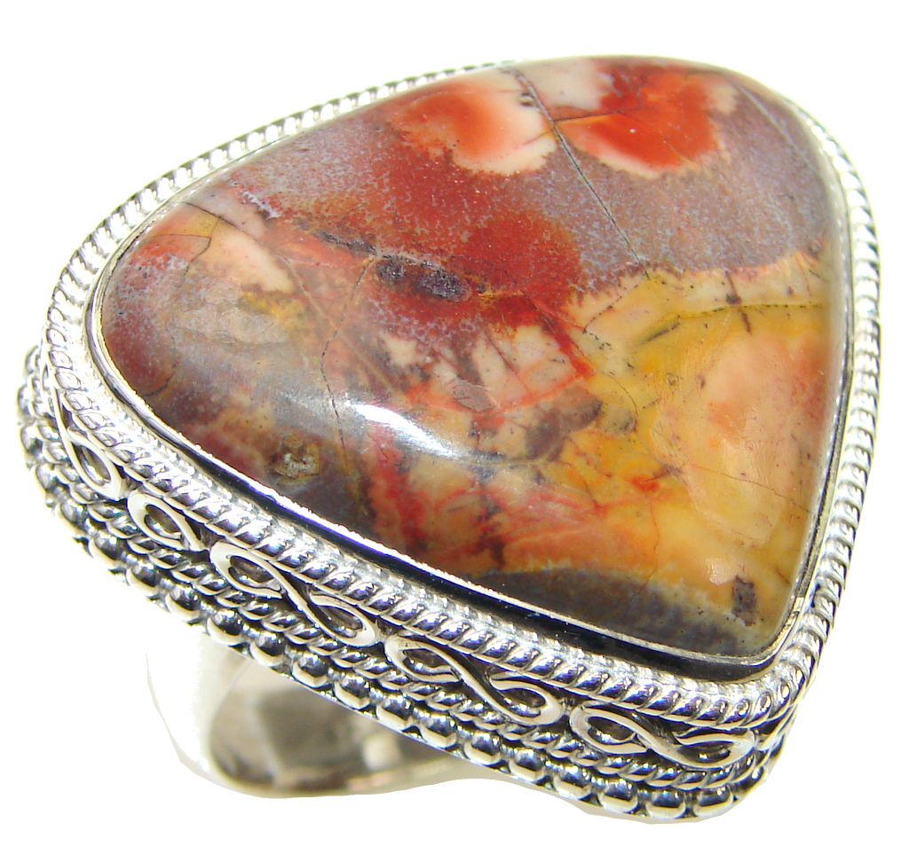 Big! Stylish Brown Pietriefied Wood Sterling Silver Ring s. 8 1/4