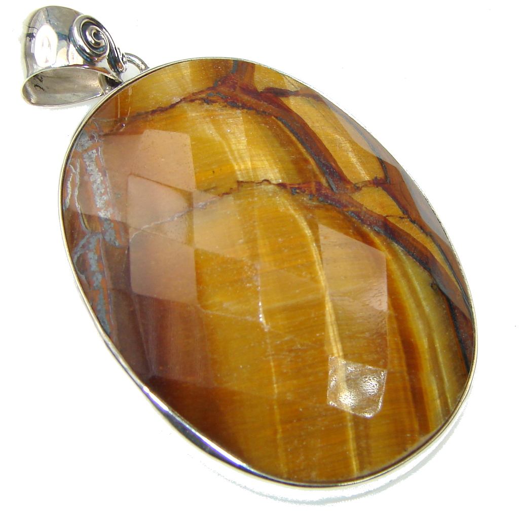 Fantastic Faceted AAA Tigers Eye Sterling Silver Pendant