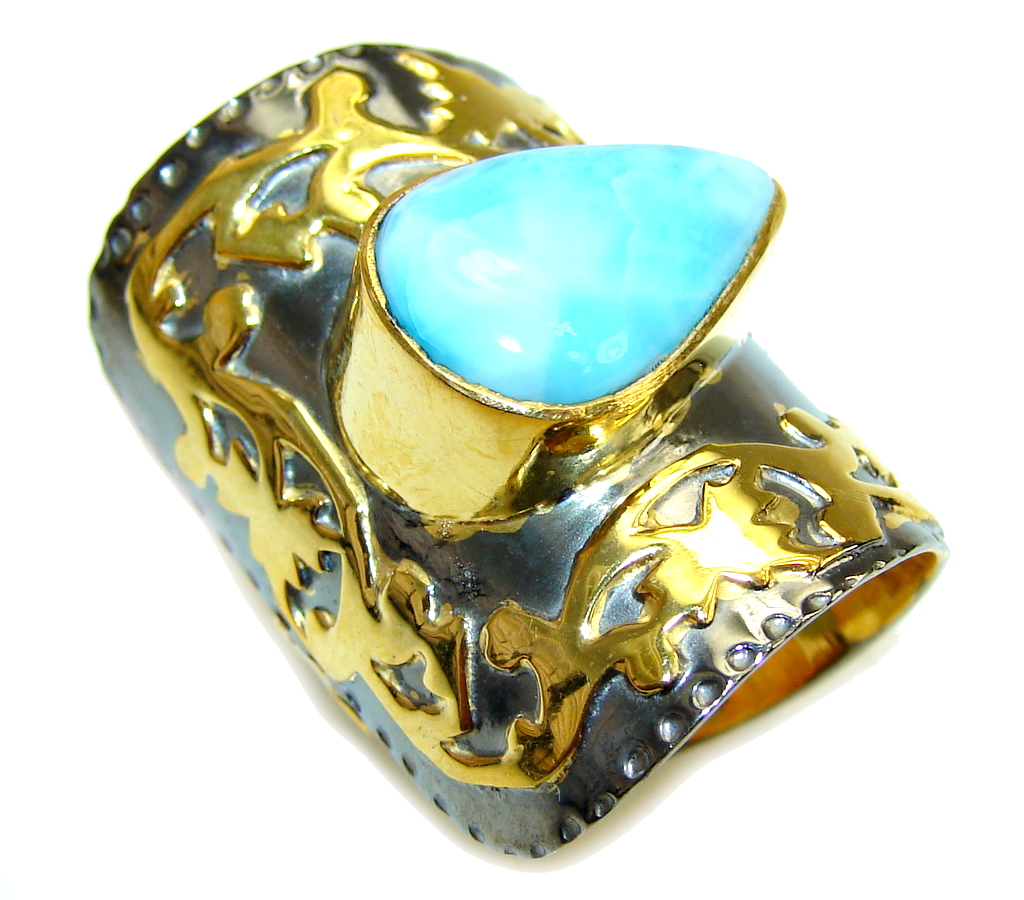 Excellent Design AAA Blue Larimar Gold Plated Sterling Silver Ring s. 9 adjustable