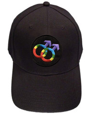 Black Baseball Cap with Rainbow Double Mars Gay Male Symbols - LGBT Gay Men's Pride Hat. Gay Pride Clothing & Apparel