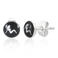 Hot Girl - Stud Earrings (Black Circle & White Girl) Female Pride Lesbians