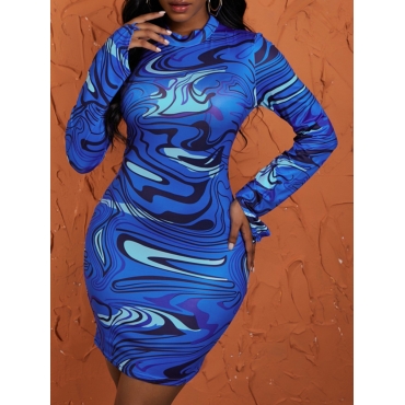 Lovely Casual O Neck Print Blue Knee Length Dress