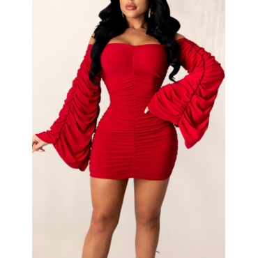 Lovely Stylish Dew Shoulder Fold Design Red Mini Dress