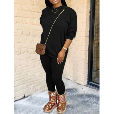 Lovely Casual O Neck Basic Skinny Black Two Piece Pants Set