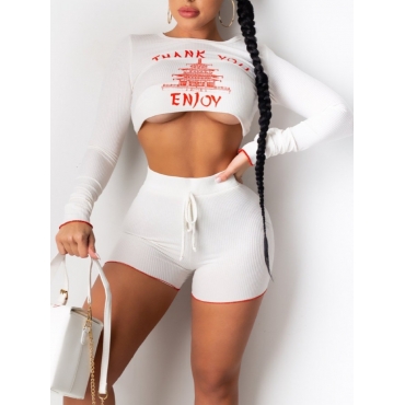 Lovely Sportswear O Neck Letter Print White Two Piece Shorts Set