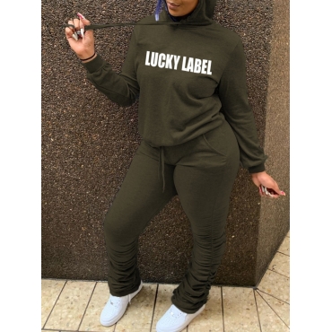 Lovely Casual Hooded Collar Letter Print Army Green Two Piece Pants Set