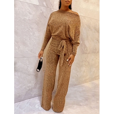 Lovely Trendy Bandage Design Loose Yellow Two Piece Pants Set