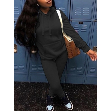 Lovely Casual Hooded Collar Basic Black Two Piece Pants Set