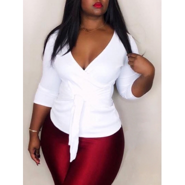 Lovely Trendy V Neck Bandage Design White Blouse