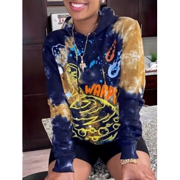 Lovely Casual Hooded Collar Print Black Hoodie