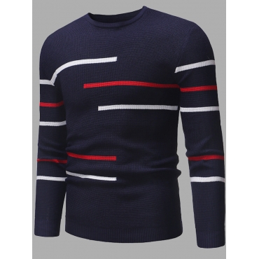 Lovely Stylish O Neck Striped Navy Blue Sweater