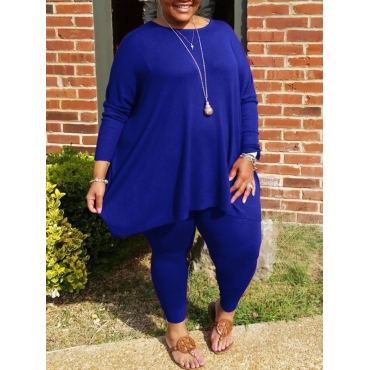 Lovely Casual O Neck Asymmetrical Blue Plus Size Two-piece Pants Set