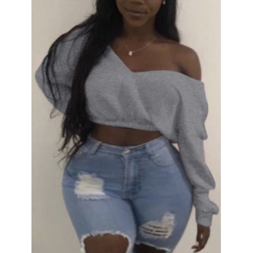 Lovely Leisure V Neck Basic Grey Short Plus Size Hoodie
