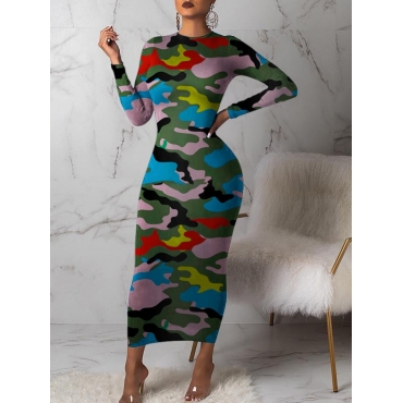 Lovely Casual O Neck Camo Print Multicolor Ankle Length Dress