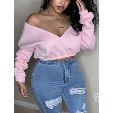 Lovely Leisure V Neck Basic Light Pink Short Plus Size Hoodie
