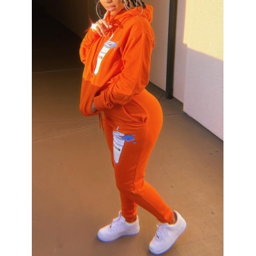 Lovely Street Hooded Collar Print Croci Two Piece Pants Set