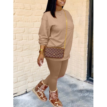 Lovely Casual O Neck Basic Skinny Khaki Two Piece Pants Set