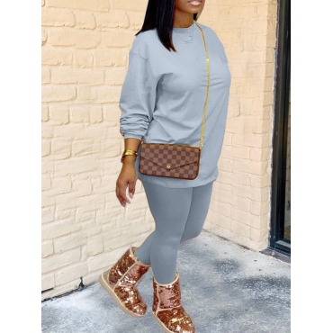 Lovely Casual O Neck Basic Skinny Baby Blue Two Piece Pants Set