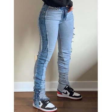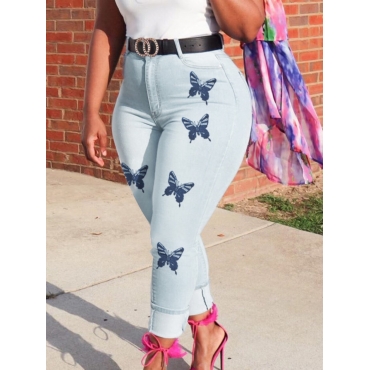 Lovely Casual Butterfly Print Baby Blue Jeans