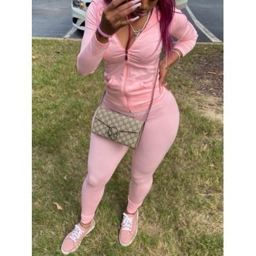 Lovely Casual Folds Kangaroo Pocket Pink Plus Size Two-piece Pants Set