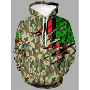 Lovely Street Hooded Collar Camo Print Multicolor Men Hoodie