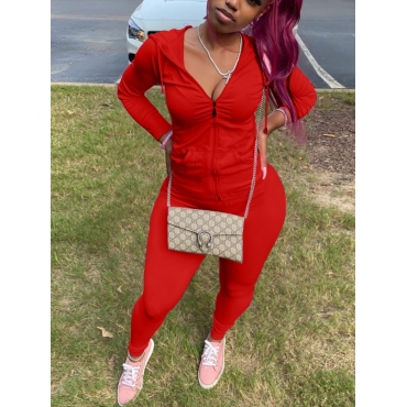 Lovely Casual Folds Kangaroo Pocket Red Plus Size Two-piece Pants Set