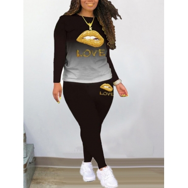 Lovely Casual Lip Print Gradual Black Two Piece Pants Set