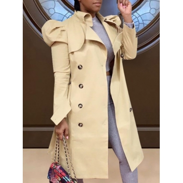 Lovely Trendy Buttons Design Khaki Trench Coat