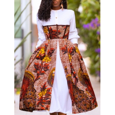 Lovely Bohemian O Neck Print Patchwork White Knee Length Dress