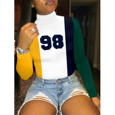 Lovely Street Turtleneck Print Patchwork White T-shirt