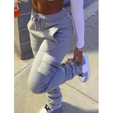 Lovely Casual Side Pocket Grey Pants