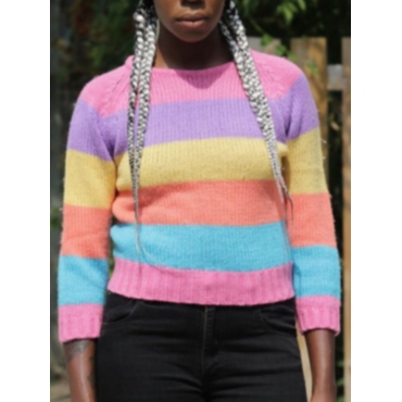 Lovely Stylish Rainbow Striped Multicolor Sweater