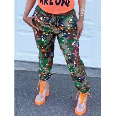 Lovely Sportswear Camo Print Patchwork Army Green Leggings