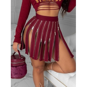 Lovely Trendy Zipper Design Wine Red Skirt