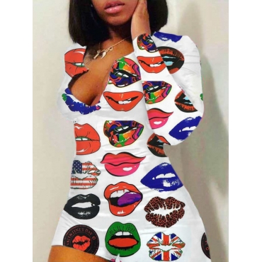 Lovely Casual Lip Print Skinny White One-piece Romper
