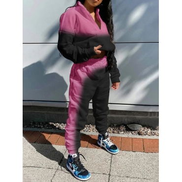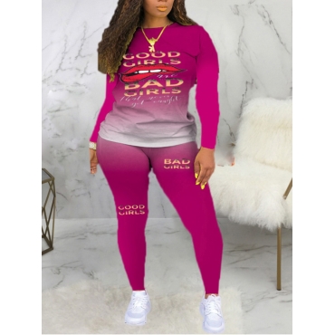 Lovely Casual Gradient Lip Print Rose Red Two Piece Pants Set
