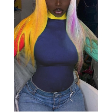 Lovely Street Turtleneck Patchwork Deep Blue T-shirt
