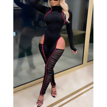Lovely Sexy Hollow-out Mesh Patchwork Black One-piece Jumpsuit