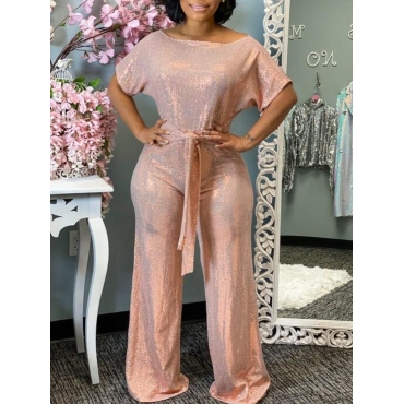 Lovely Stylish Lace-up Pink One-piece Jumpsuit