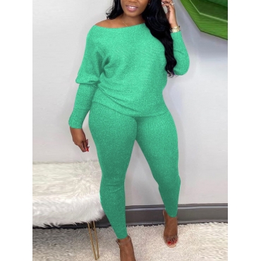 Lovely Casual Boat Neck Long Sleeve Green Two Piece Pants Set