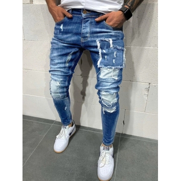 Lovely Street Patchwork Bue Men Jeans