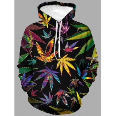 Lovely Street Hooded Collar Leaf Print Multicolor Men Hoodie