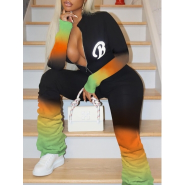 Lovely Stylish Gradient Print Zipper Design Black Plus Size One-piece Jumpsuit