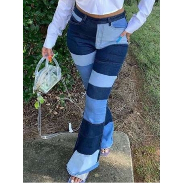 Lovely Street Color-lump Patchwork Blue Pants