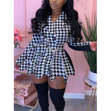 Lovely Stylish Turndown Collar Print Patchwork Black Mini Plus Size Dress