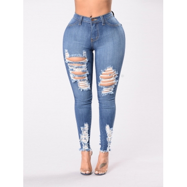 Lovely Street Broken Holes Deep Blue Plus Size Jeans