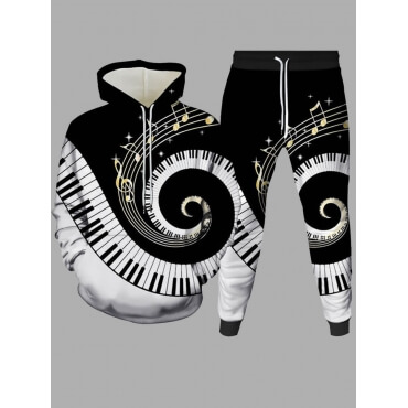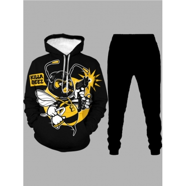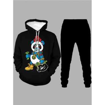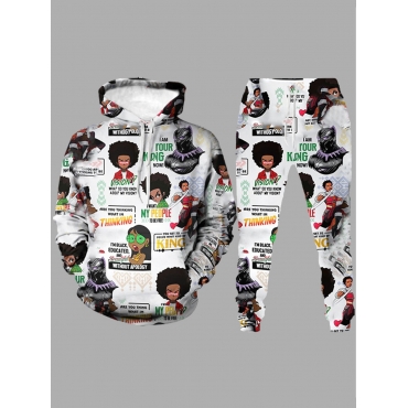 Lovely Stylish Hooded Collar Print Black Men Two-piece Pants Set