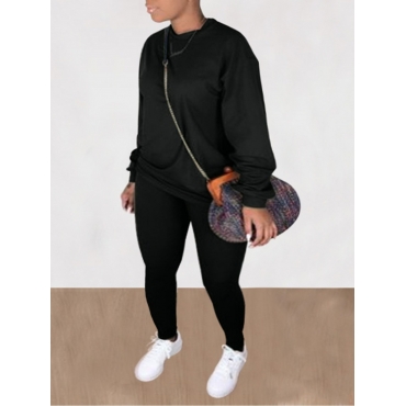 Lovely Casual O Neck Long Sleeve Black Plus Size Two-piece Pants Set(Without Bag)